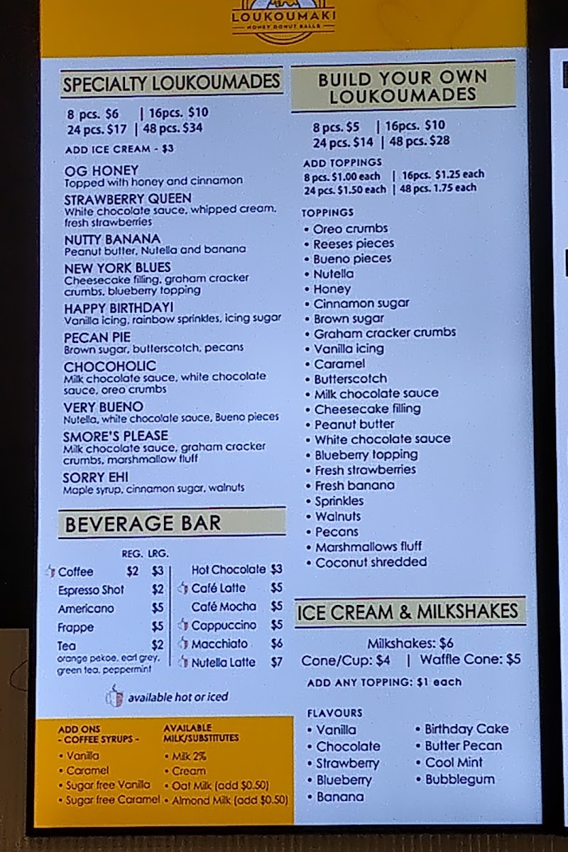 Don't miss their honey balls, which are a perfect sweet ending, especially in enticing flavors like blueberry cheesecake, expertly balancing sweetness. The warm and welcoming atmosphere, complemented by friendly staff, makes it a great spot for both a hearty meal and dessert indulgence. With a focus on authentic recipes and a dash of local charm, Loukoumaki x Smashed is a true gem worth discovering.